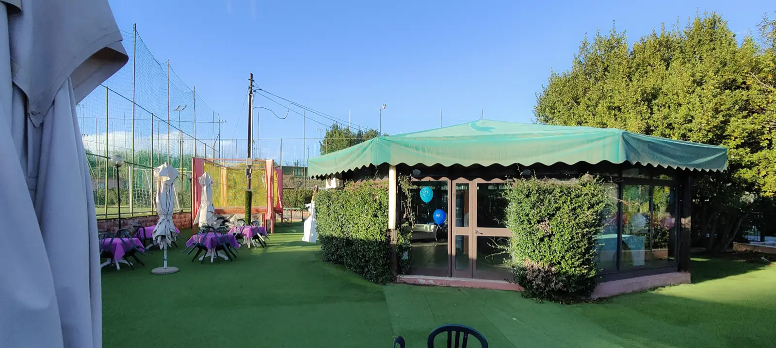 Il Gazebo Peter Pan è una struttura ottagonale in legno e vetro con ampio spazio esterno, in cui sono presenti giochi per bambini, un tappeto elastico ed un campo di calcetto che lo rendono un luogo adatto ad ogni tipo di evento.